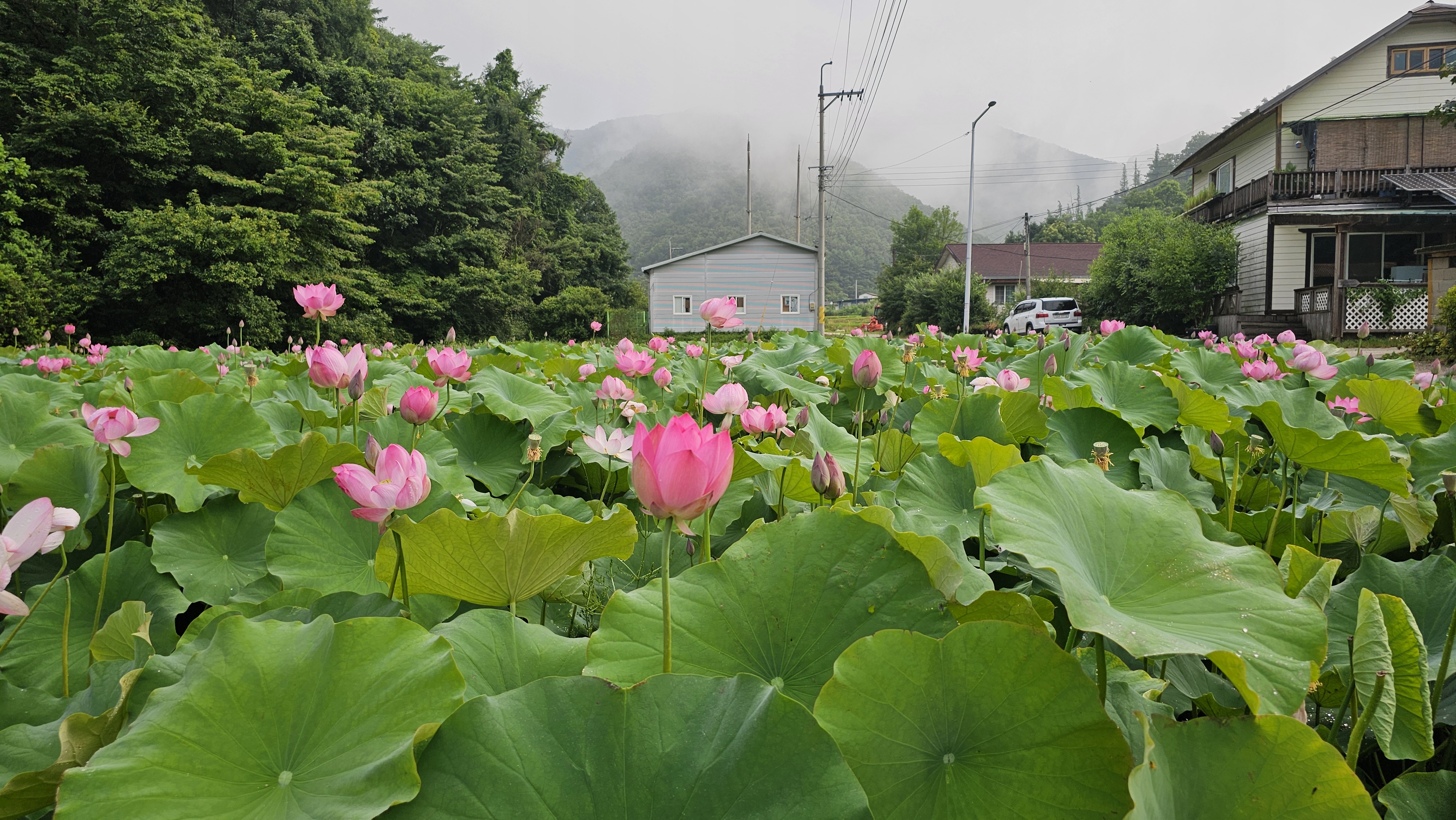 마을펜션 앞 연꽃이 활짝 피었습니다.